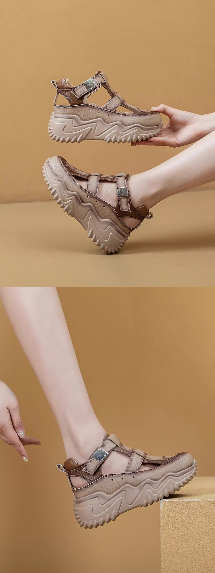 女性用夏用ソフトレザー通気性ローマサンダルの外観